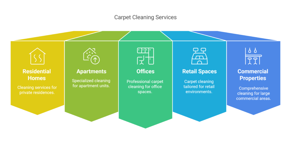 Our carpet cleaning experts provide services for residential homes, apartments, offices, retail spaces, and commercial properties. No matter the carpet type, we have the right cleaning method to bring it back to life.
