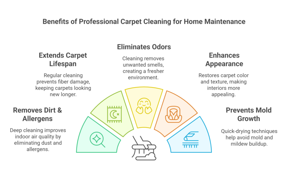 - Enhances Appearance: Professional cleaning restores carpet color and texture, making interiors more appealing.